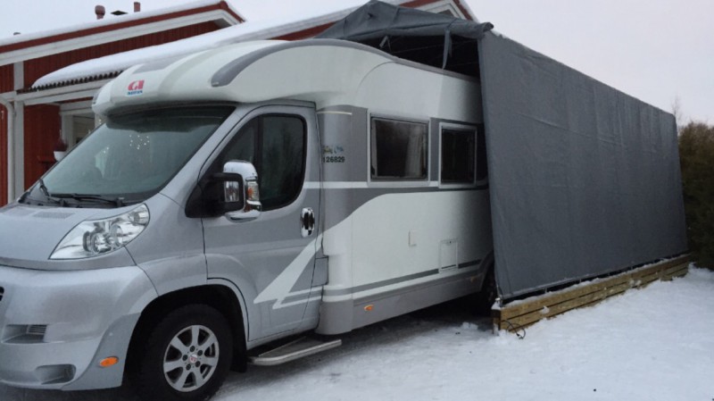 Ei siinä paljoa ollut liikkumavaraa kun tuo teltta on 8 metrinen ja auto 7.2 m, mutta peruutin sen n. 10 senttiä aiempaa lähemmäksi, nuo renkaat ovat jo lähemmäksi 8 vuotta vanhat joten en niistä enää niin stressiä ota. Jostain ollut ymmärtävinään jotta pitäisi saada kunnolla kuumaksi jotta kosteus koneesta poistuu.