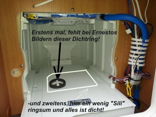 Meidän vaunussa suihkun lattia menee WC istuimen alle nurkkaan saakka.  Kasetin tyhjennyskorkki oli mennyt vanhaksi ja päästi täydestä kasetista vuotoa, niin se tuli heti näkymään suihkun puolelle. Uusi korkki ja pitää ilman "apinan raivo -kiristystä"