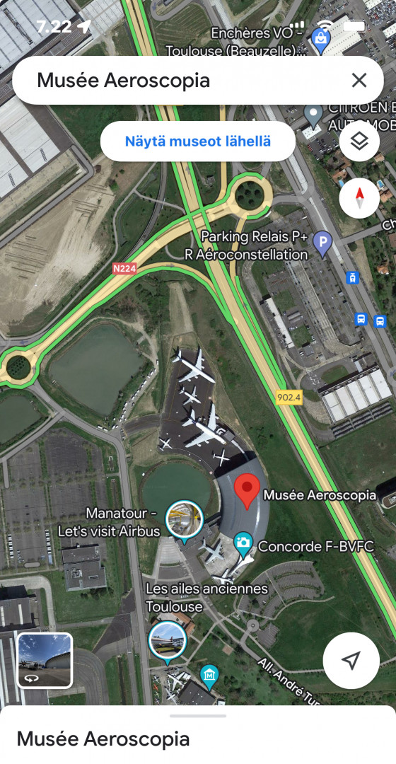 Olisi kellään tietoa tuon Toulousen ilmailu- ja avaruusmuseon pysäköintimahdollis uuden nykytilasta? Kuvassa isojen lentokoneiden takana lammen rannalla on kulkineita parkissa useita. Vaikuttaa korkean riskin paikalta, hyvä kohde varkaille.