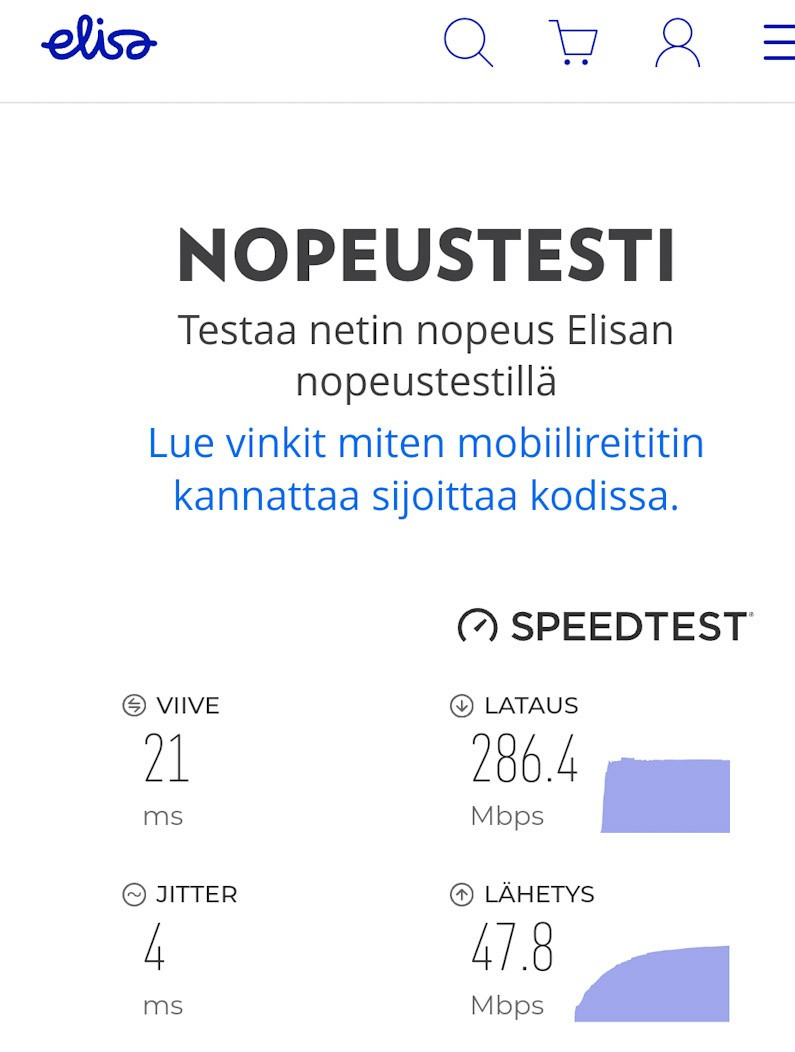 Ihan hyvin mobiili rokkaa Edit Elisan 300Mbps liittymä. Nokian luuri kyseessä.