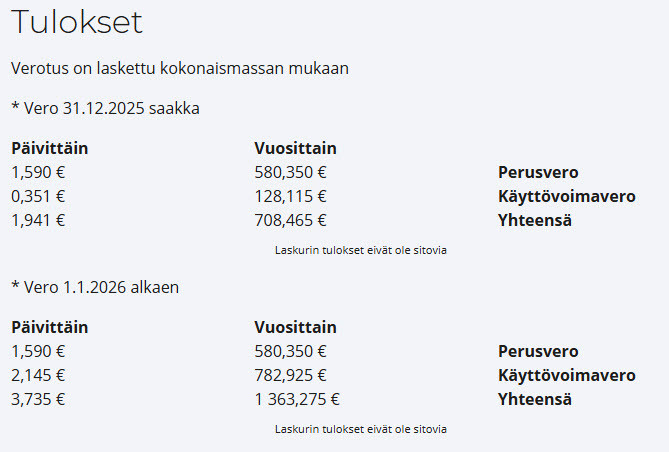Tuo on noin 3,5 € per päivä. Kallista tuokin, muttei sentään 6€. Itselläni vero on muistaakseni noin 3,8€ päivässä.