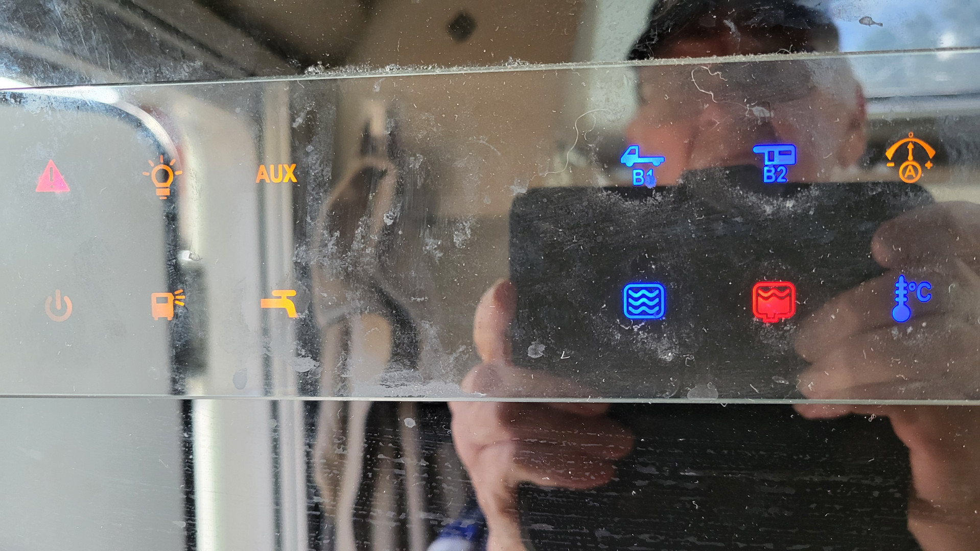 Nyt kävin kokeilemassa hälyn poistoa. Ja sehän onnistui. Mutta käyttäisin termiä pääkatkaisija enkä valokatkaisijaa. Eli tuota alarivin eniten vasemmalla olevaa merkkivaloa.
