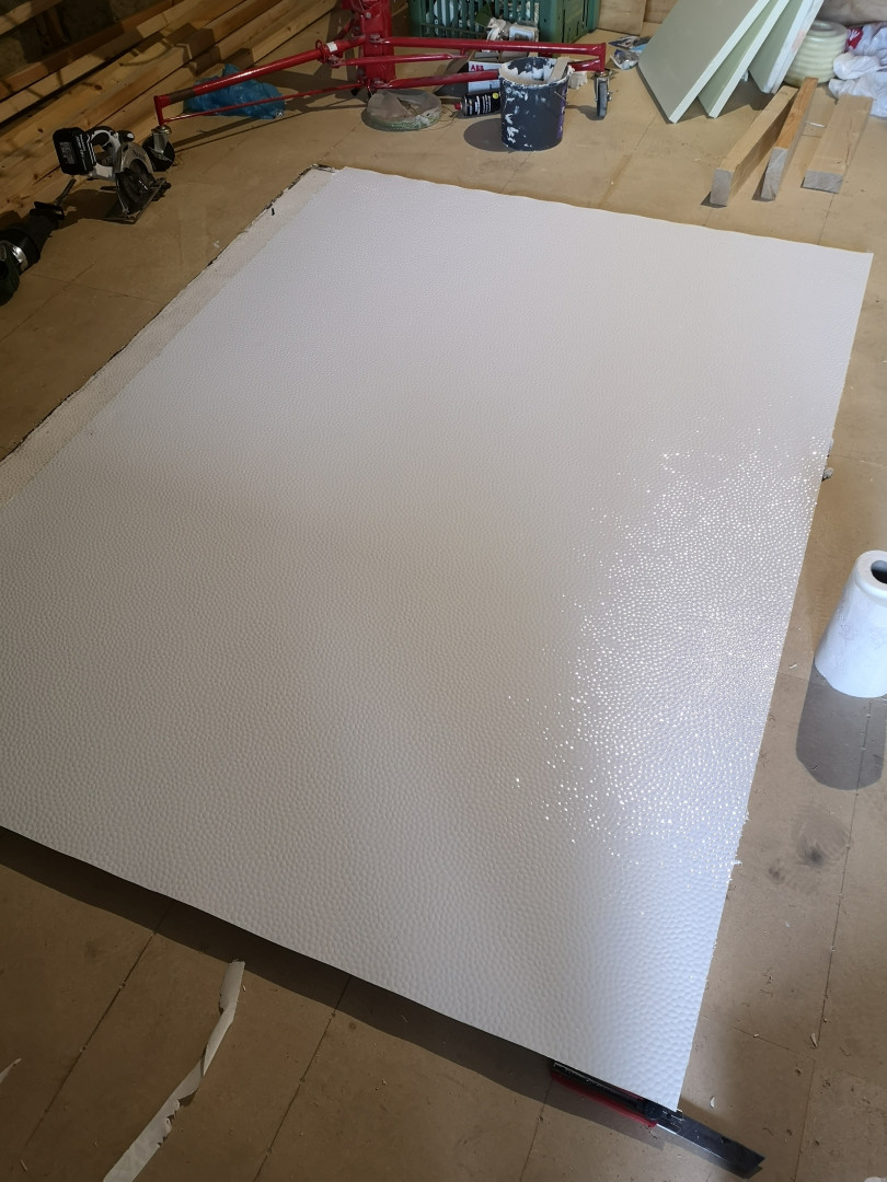 Uusi pelti takaseinää varten. Ihanan kallista, mutta onneksi sattui olla pari lommoa rullassa niin lähti heti puolet hinnasta pois.