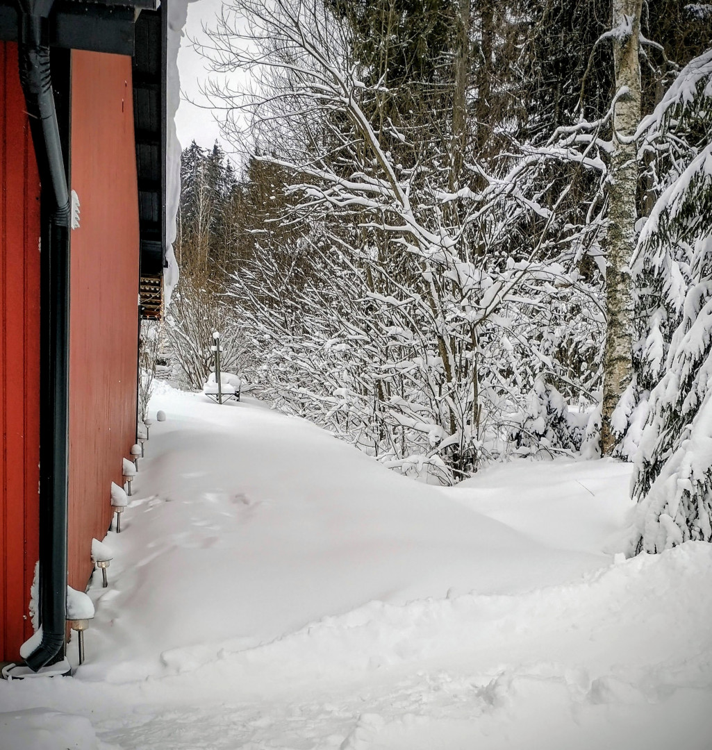 Meillä kulki joskus epämääräistä porukkaa tuosta talon päästä ja jätin väylän kolaamatta, hipsivät sitten eri reittejä.