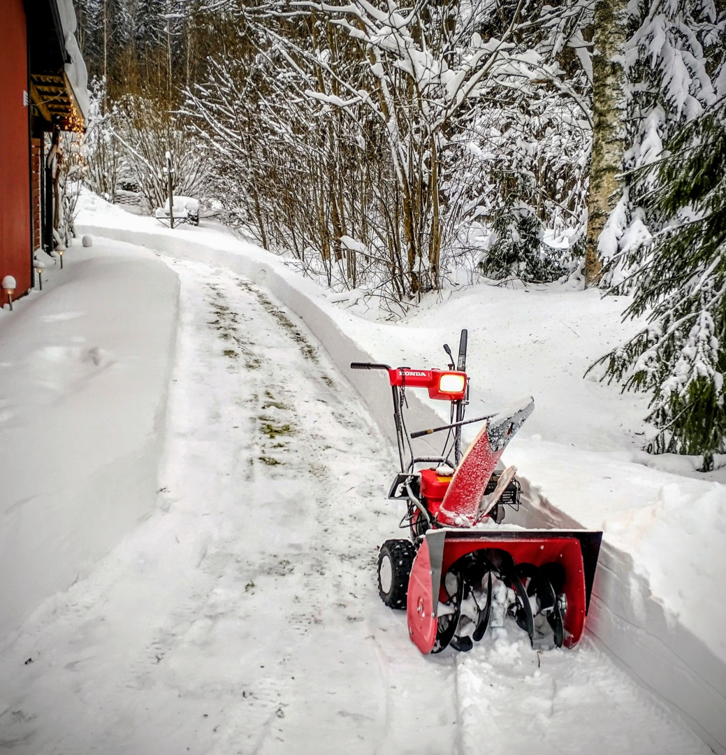 Meillä taloyhtiön Honda on minulle liian matala. Nostin "ohjaustangon" ylempään asentoon näiden teräsvaarien jäljiltä, ei hirveästi helpottanut ergonomiaa. Ja kyllä hiki tulee, jos möyrii lähes puolimetristä polkua auki, tai availee asuntojen käytäviä, eli kokoajan pitää konetta vekslailla johonkin suuntaan...