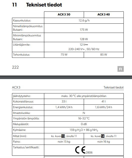 Tuossa jotain lukuja Dometic mallista.
