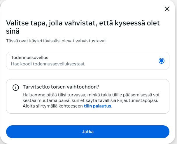 Nyt on koitettu ottaa yhteyttä Facebookiin ja annettu henkilötiedot. Joku kirjautumiskoodi tuli, mutta ei sillä pääse eteenpäin, kun homma tyssää siihen 6-numeroiseen koodiin 2-vaiheisessa tunnistuksessa. Minulla kun sellaista koodia ei ole, enkä tiedä, mistä sen saisin. Mahtaako tuolla Facessa olla muuta, kuin joku tekoäly vastaamassa? Mä olen valinnut helpomman reitin. En ole koskaan ollut Metan palveluiden käyttäjä. En Face, Insta, Wassup tai muut. Ei ole ongelmia kirjautumisessa. Joo, eikä ole tullut puheluita Irakista. Signalissa saa yhteyden perinteisen puhelin/sms lisäksi. Metan palveluissa asiakkaita ovat mainostajat, jotka ostavat kohdennettua mainontaa. "Tuotteita" ovat palveluiden käyttäjät, joiden tietoja Meta myy asiakkailleen. Tätähän ei kysytty, mutta vastasin vaikkei kysytty.