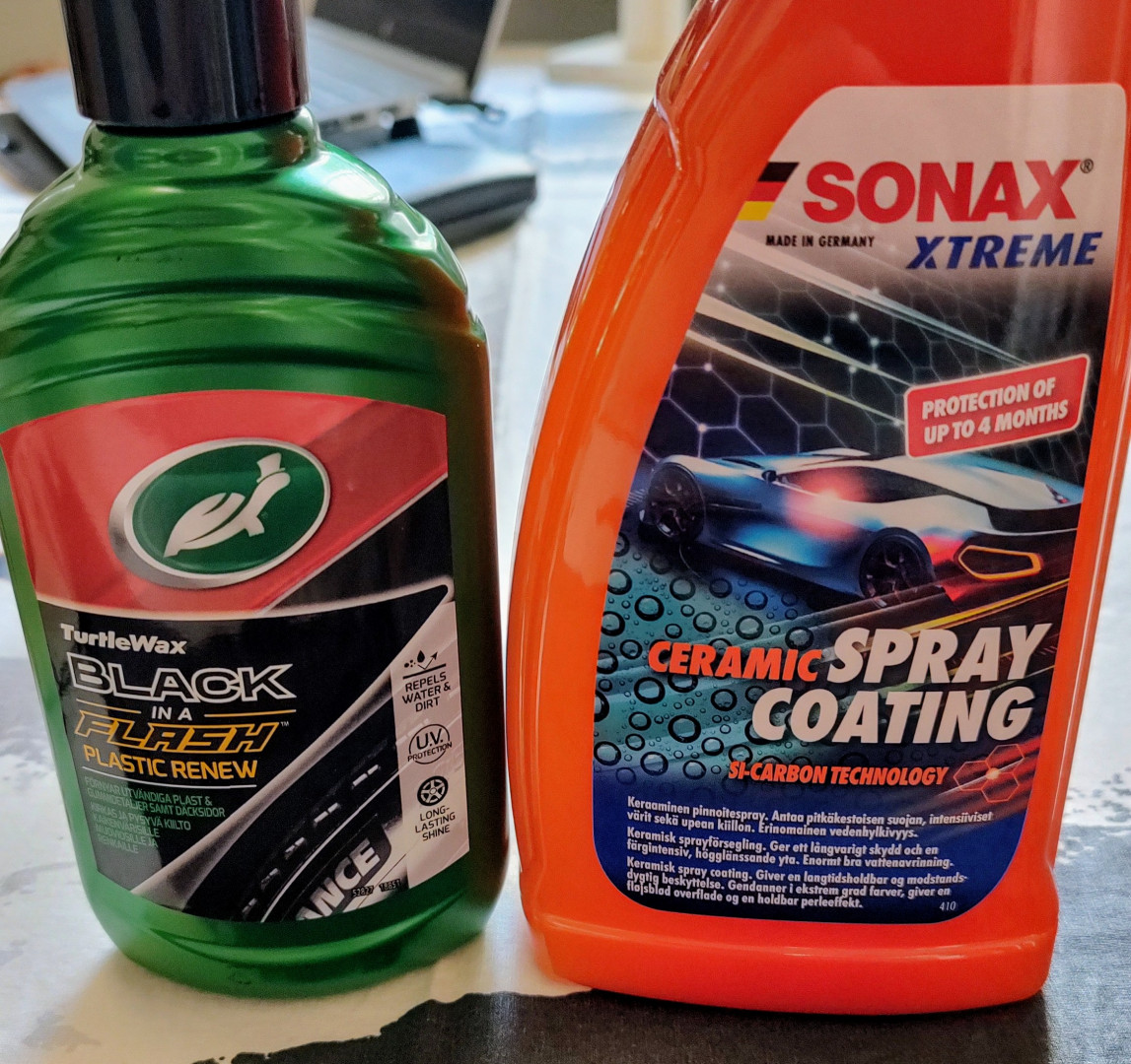 Minä ostin Sonaxin keraamista vahaa, kokemuksia myös Korrekista. Ainakin Sonaxin pullo on kolmen vartin kokoinen (750 ml), eli riittoisaa. Korrek lienee 350 ml.