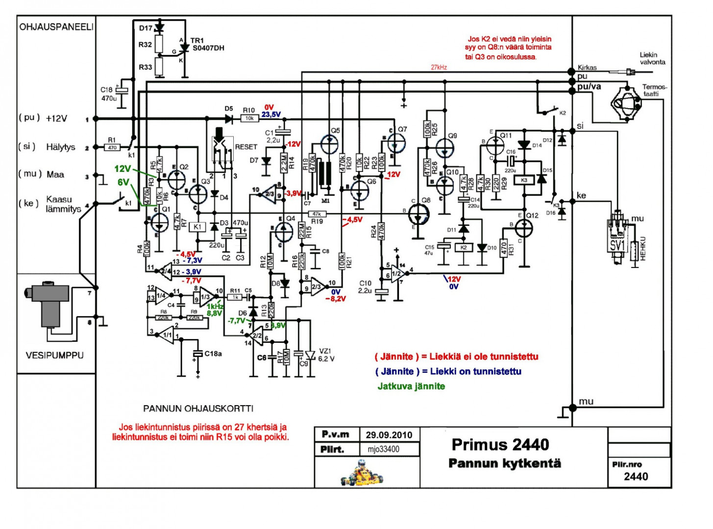 Primus 2440 on kytkennältään sama kuin 2480:nen, mutta vain yksitehoinen. Noin 2,5kw.