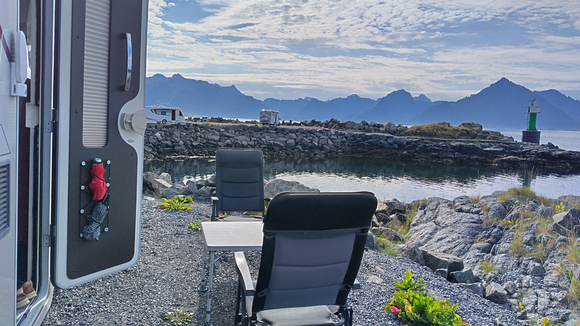 Löytyi upea stellplatz. 18€ hintaa mutta hyvä varustus. Pesukone 16A sähkö, suihku, wc, vettä sisään ja ulos, wc tyhjennys ja mahti maisemat. Vieressä lautta satama josta pääsee Svolverin puolelle. Melbu on paikka. https://park4night.com/en/place/15816
