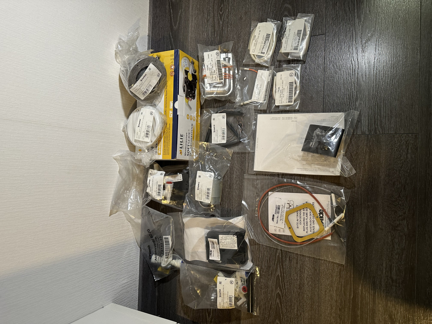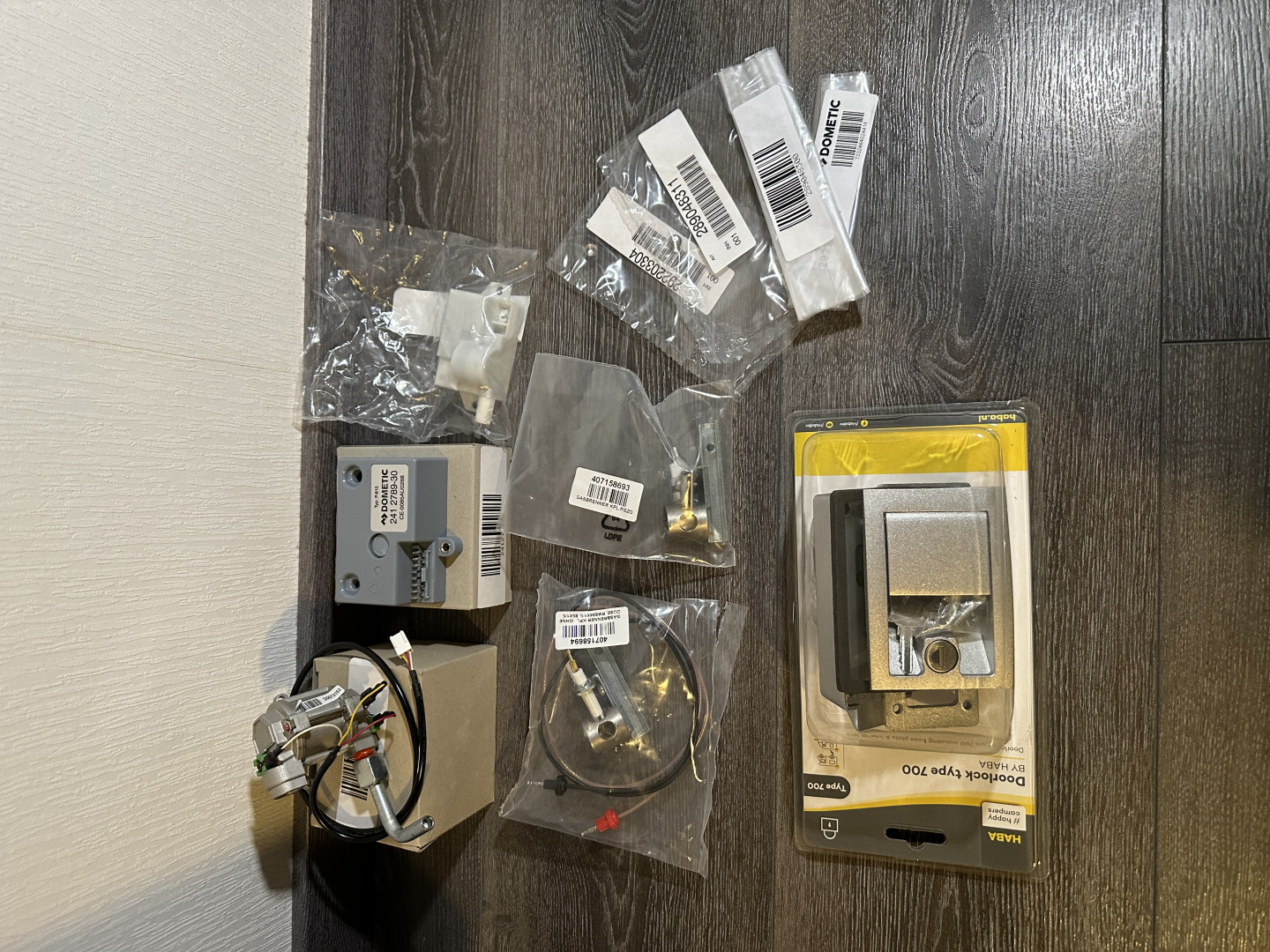 Myydään sekalainen määrä ylimääräisiksi jääneitä varaosia Alde ja Truma lämmittimiin, Dometic jääkaappeihin sekä Lilie vesipumppu ja Caralock ulko-oven lukko.