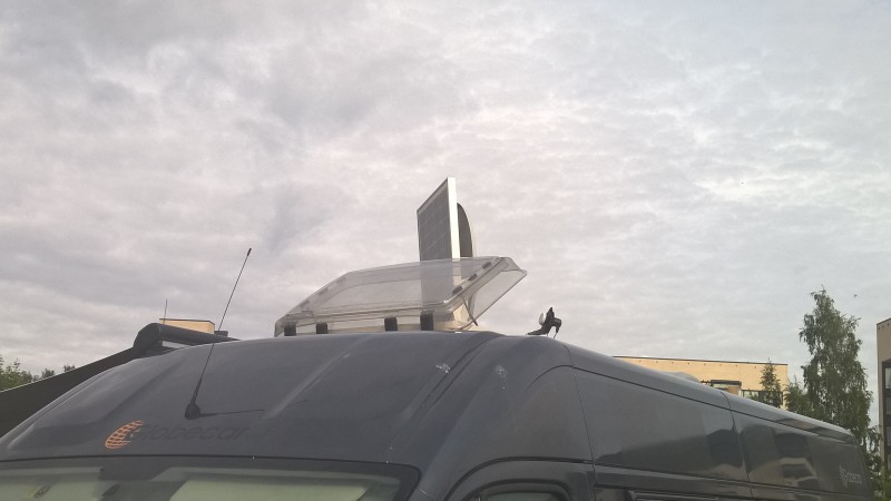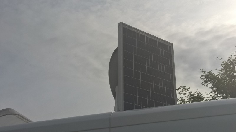 Kätevästi noilla sakemanneilla laitettu aurinkokenno lautasantenniin kiinni
