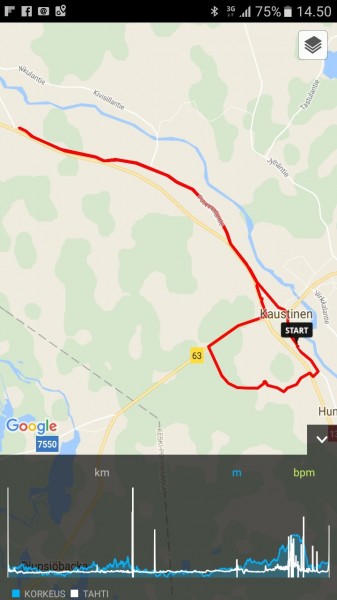 Käyty testaamassa kalustoa reilun 17 km lenkillä, sisältäen TeVen tehtaan, hotelli Pauanne ja laskettelurinne mäkilaskua