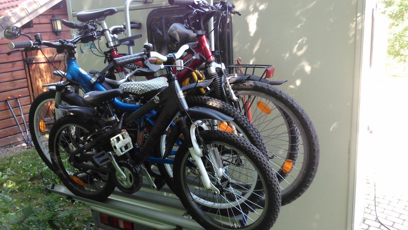 Ainakin mulla m-auton perässä aika monta kymmentä tuhatta kilsaa etelään ja takas on keikkunut Omnibike 4pp -telineessä oikean kokoisia maastopyöriä.