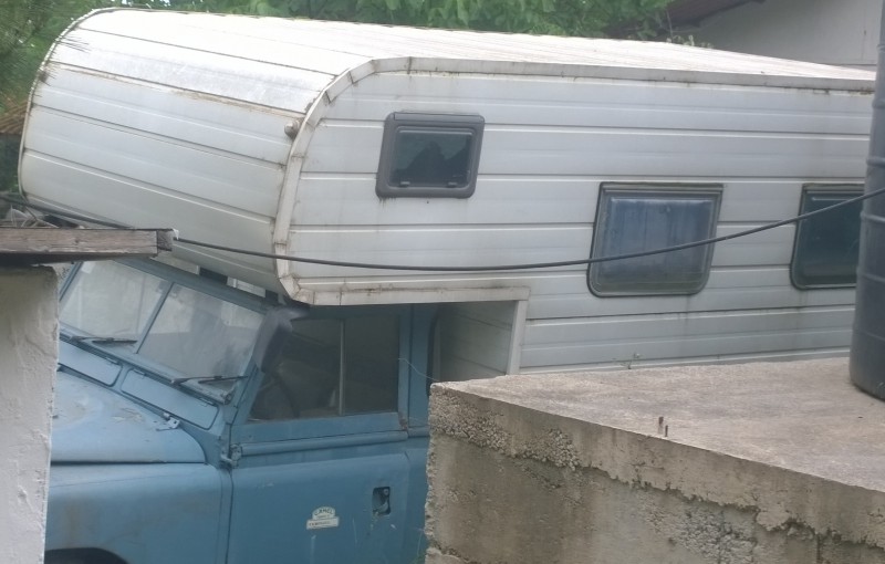 Kesken jäänyt projekti. Tuulilasinkehyksen ja camperin välissä 3-4cm ilmaa. Toisaalta ei tätä ole ehkä liikutettukaan miesmuistiin