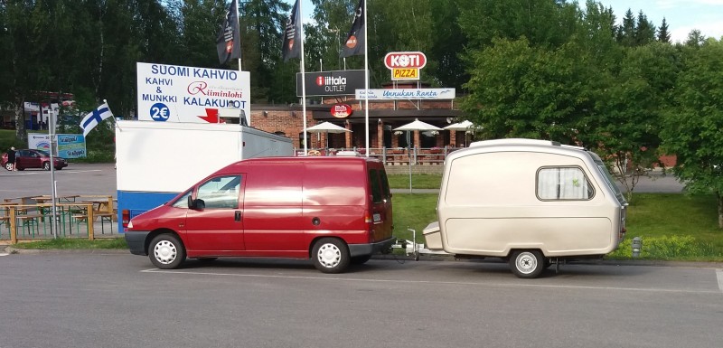 Itse aivan tosissani suunnittelin tuollaistakin vaihtoehtoa. Tuollainen paku kun oli entuudestaan, niin tavarat olisi saanut autoon ja vaunu olisi ollut vain yöpymistä varten.