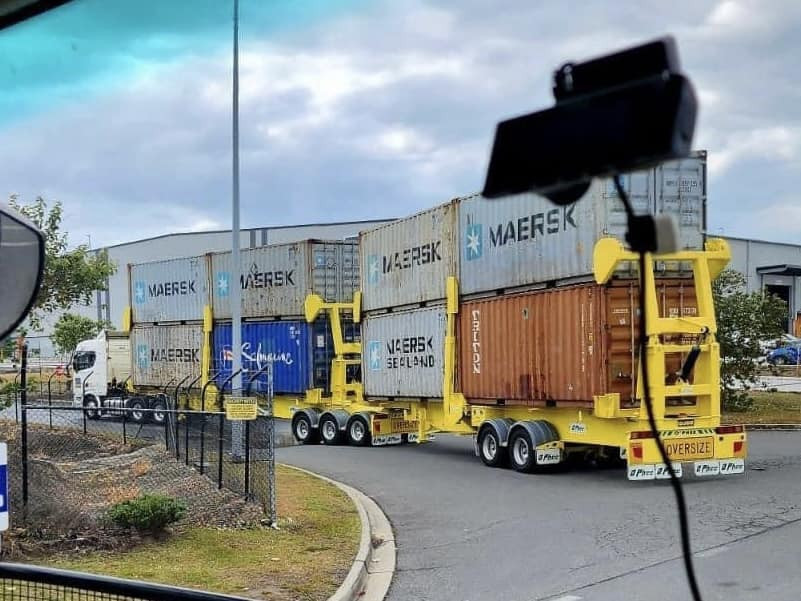 Taitaapa olla sataman sisäisiä siirtoja ,erikoislupia ei siis vaadita. Ei noilla tieliikenteeseen ole asiaa ainakaan Suomessa eikä EU-alueellakaan..