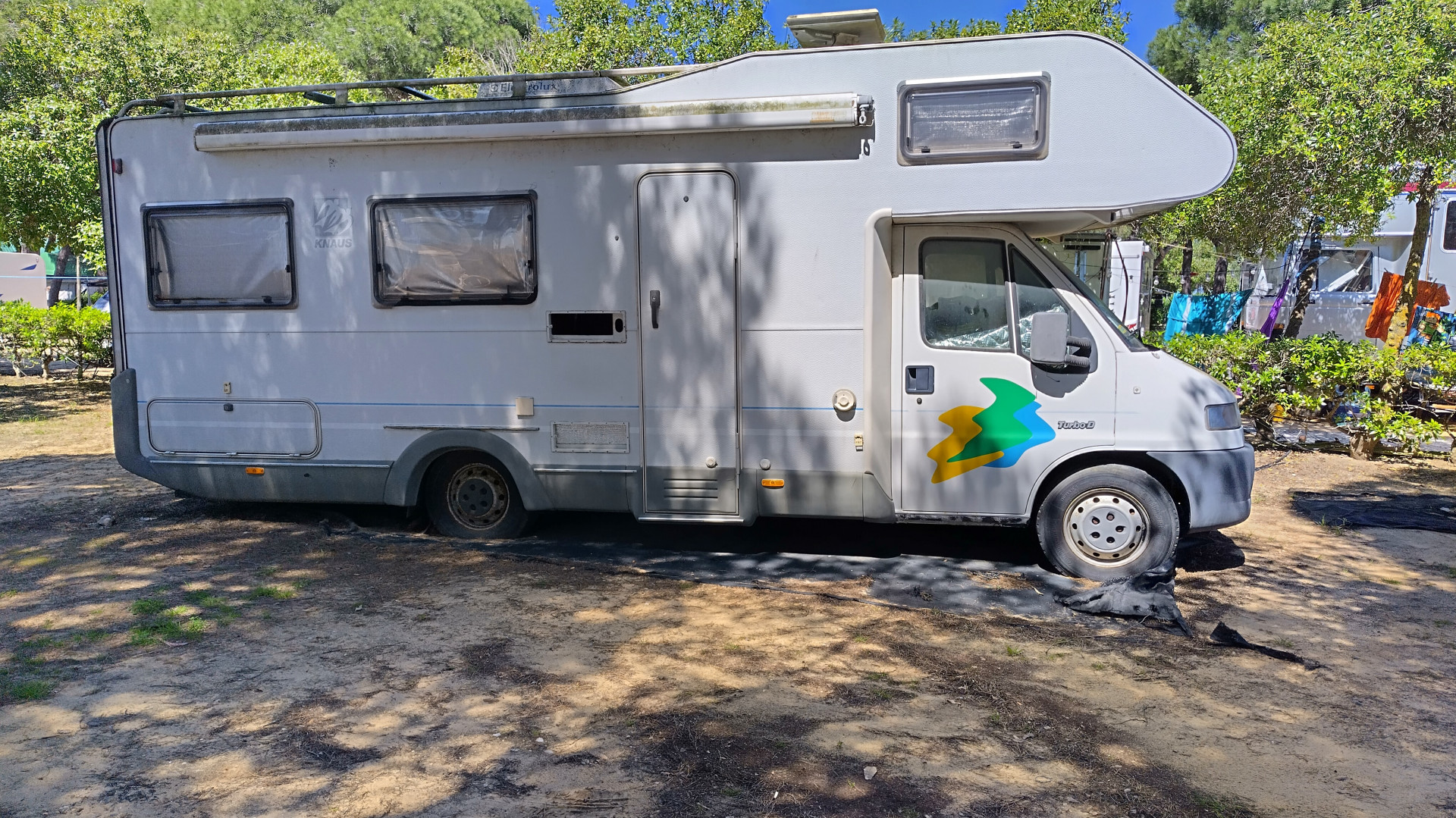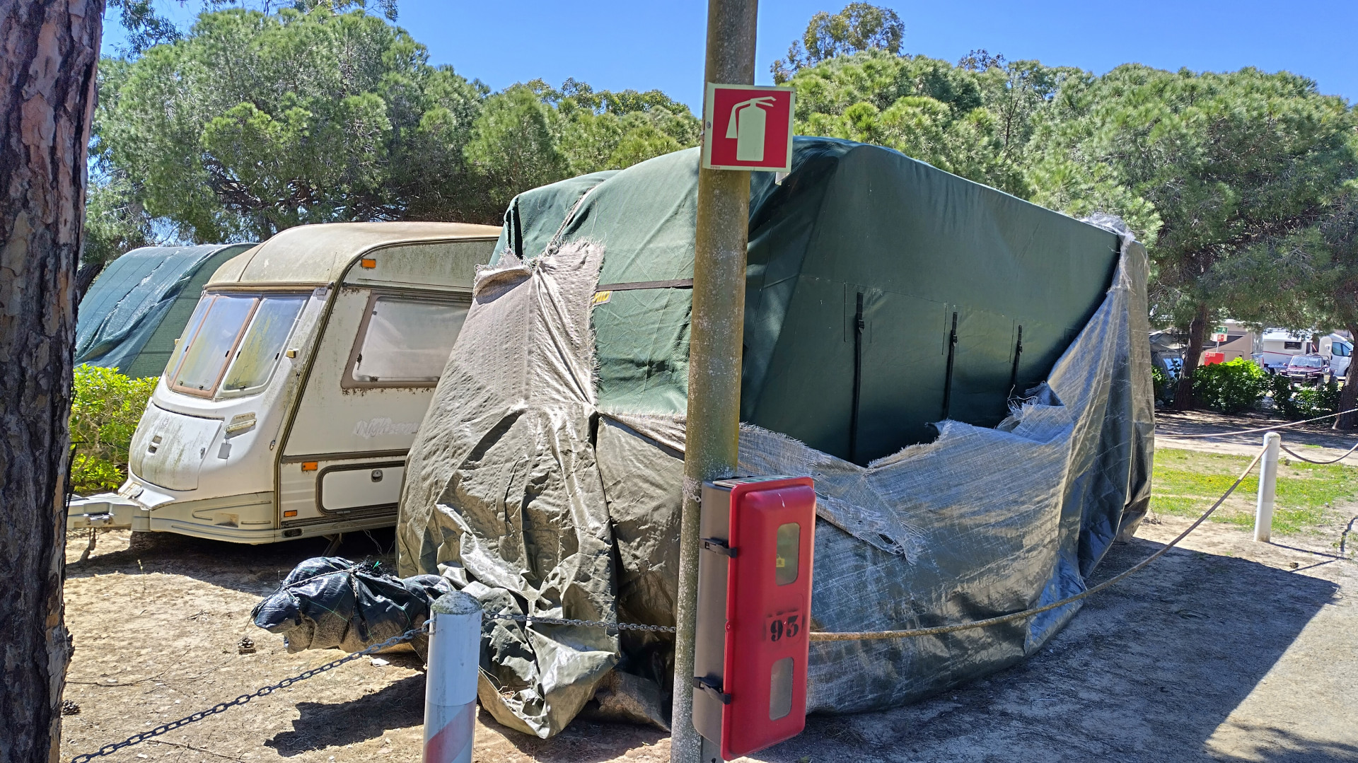 Hylättyjä? A-auton takarenkaat uponneet 10cm maahan ja tyhjänä. Vaunut tosi paskaisia. Olhao ja takanurkan säilytysalueella nuo.
