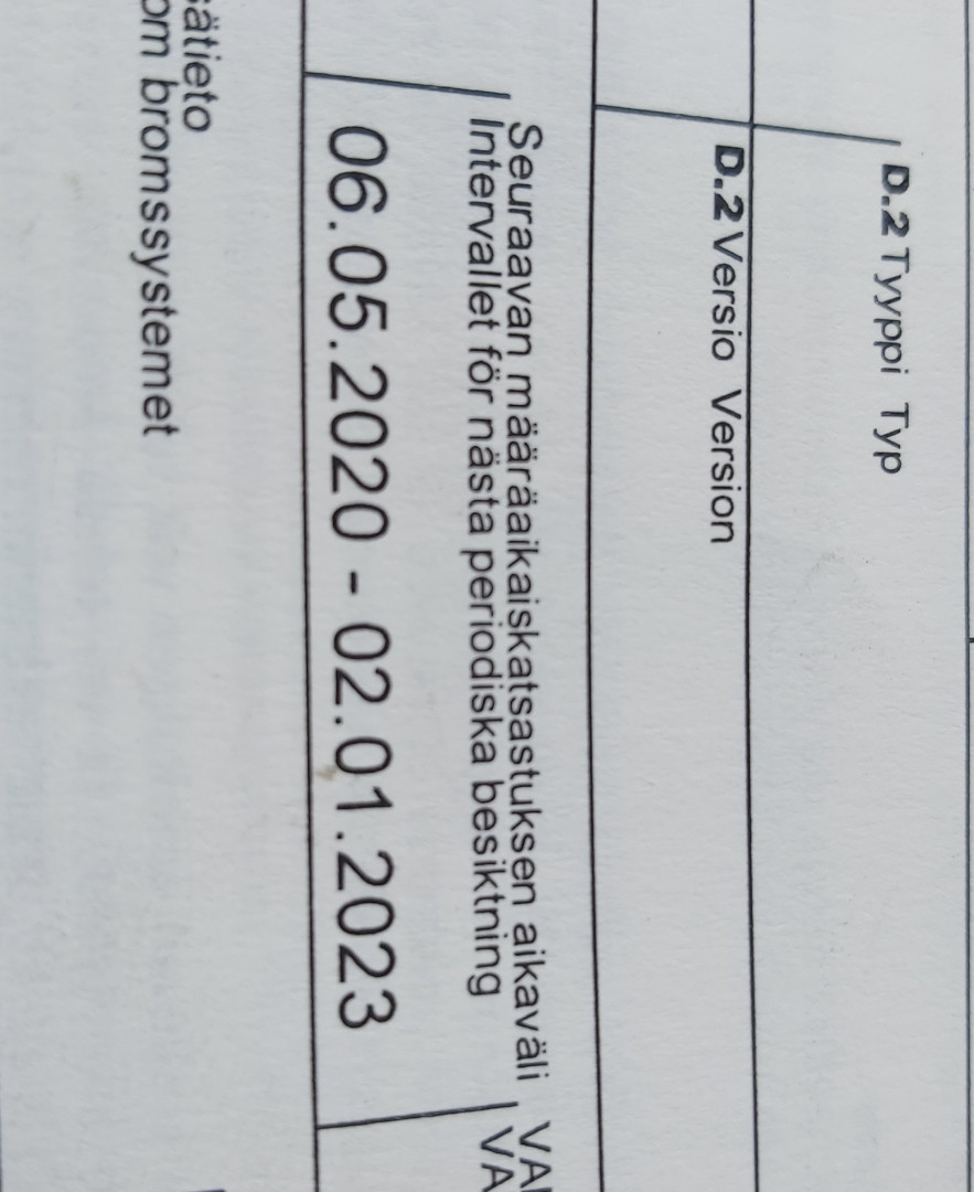 Tänään katsastettu vaunu. Seuraava katsastus 2.1.2023 mennessä.