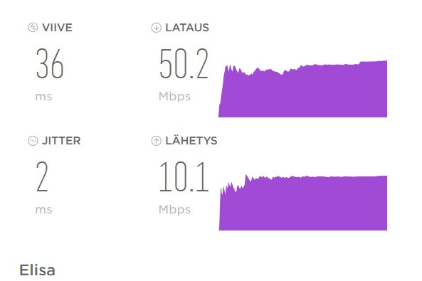 https://elisa.speedtestcustom.com/result/2fe960d0-d189-11ea-b221-3bd104aeffc7 Mä en vastaa Elisan puheluihin, kun koittavat saada vaihtamaan lankaliittymän 4G:eeksi.