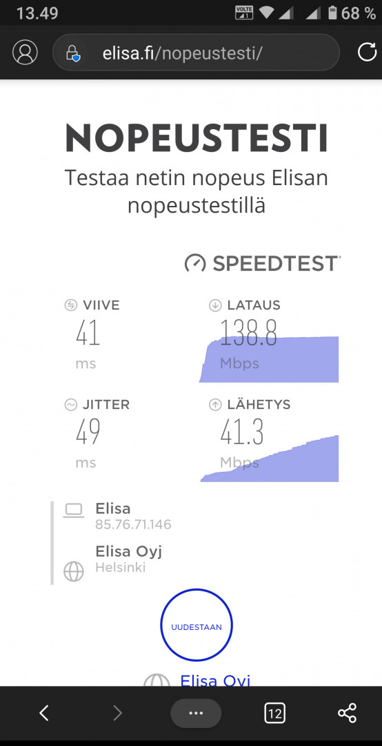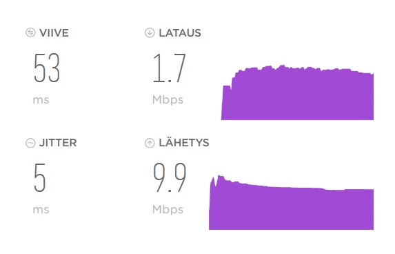 Tuli Elisalta kirje, että adsl loppuu tammikuun lopussa. Lankapuhelinlinja 20 mbit/s. lopetetaan. Bing alle 15 ms. Voidaan kattoa 4k lähetystä ja poika pelaa CS:ää samaan aikaan.