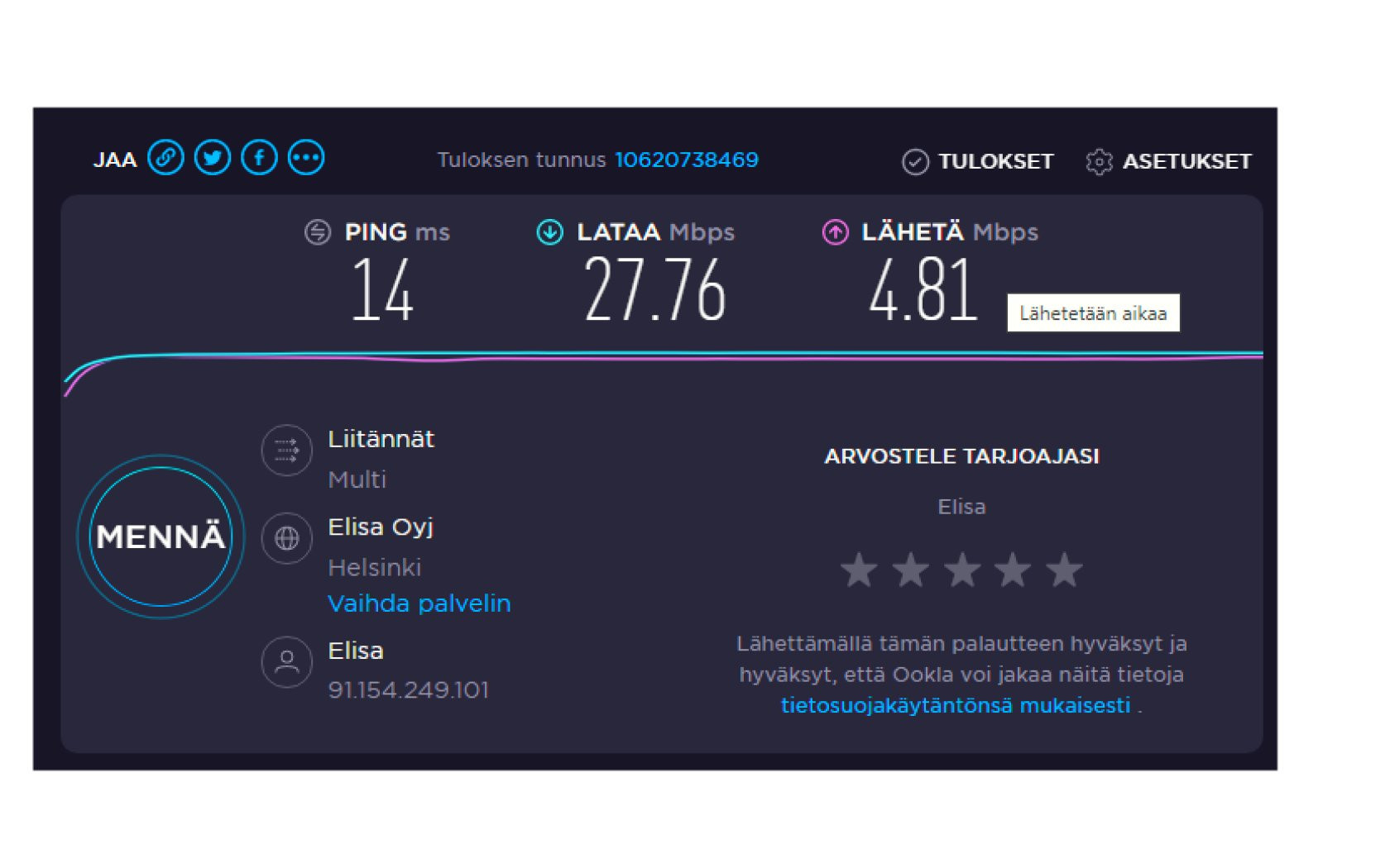 Elisa antoi mulle kokeiltavaksi,  2 viikkoa 300M 5G samaan hintaan. Niin yhtenä yönä kokeilin
