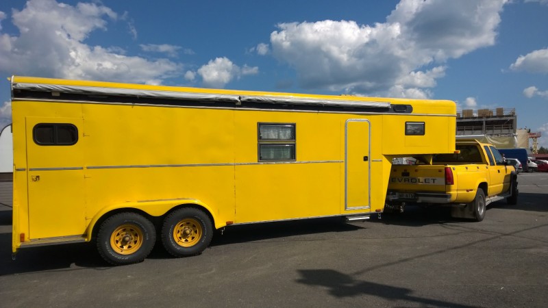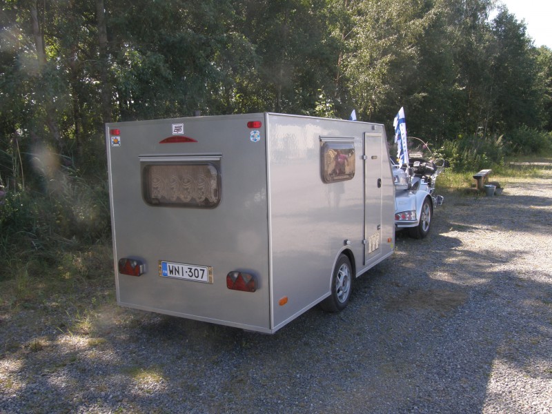 Moinen vaunu oli Lohenpyrstössä, kulki pienessä paketissa vieressä olevan asuntoauton perässä.