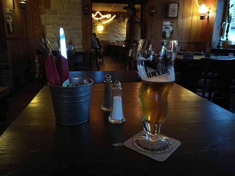Saksassa mennään hyvin normilinjalla... Tosin äsken kannettiin tässä saluunassa kauhea rasvaläjä kanaburgeri. Oli kanaa kyllä hyvin mutta ei kehumista safkassa. Paikka Western Saloon, Schwetzingen.