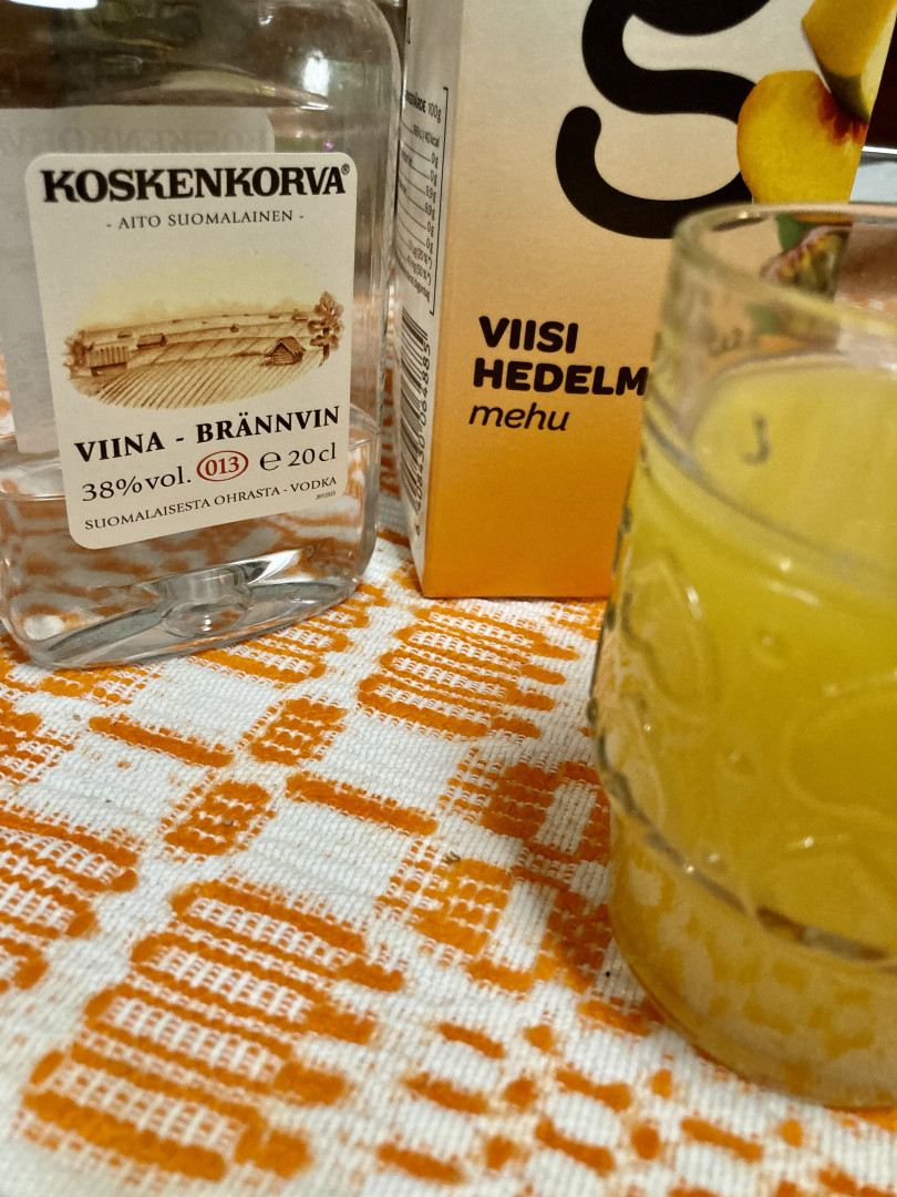 Absolut Vodka, tonic, mandariinia viipaleena ja puristettuna jäiden kera ;)