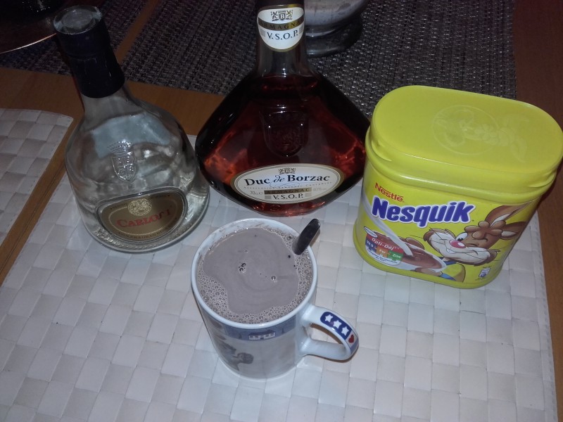Kahdesti lenkkllä tänään ja molemilla kerroilla läpimäräksi kastunut eli siis rommikaakao, mutta rommi oli matkamökissä joten laitoin brandya tilalle, mutta se tyhjeni bogen piti jatkaa armagnagilla.
