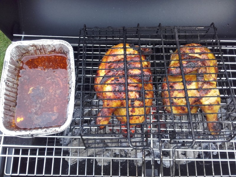 Lammasnakkeja ja sinihomejuustolla täytettyjä grillimakkaroita, päälle huidon Liiterin Nobelaner kalijjoo. Eihän sitä näin penskojen "lauantaina" kummasesti. Katomma sitten lauantaina.