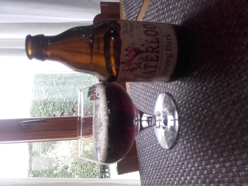 Ruoka oluen otin esiin, tummaa 8% waterloo strong  dark sata vuotis juhlan olut