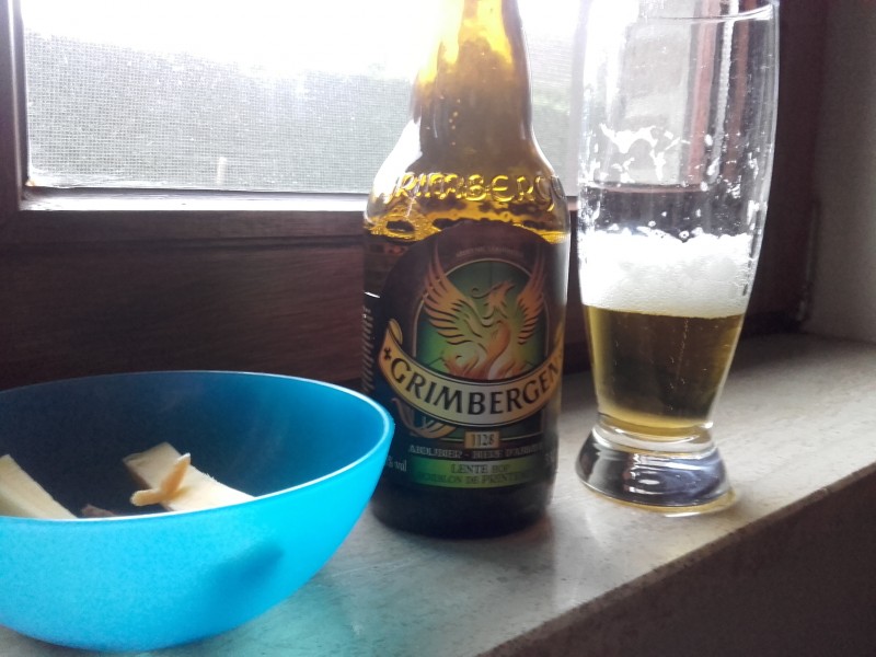 Vähän iltapäivän välipalaa. Grimbergen lente hop eli tämän kevään humalaa käytetty. Aika voimaks maku ja terävä maku. On myynnissä vielä kuukauden verran tänä vuonna sanoi esitteliä kun kaupassa maistatti.