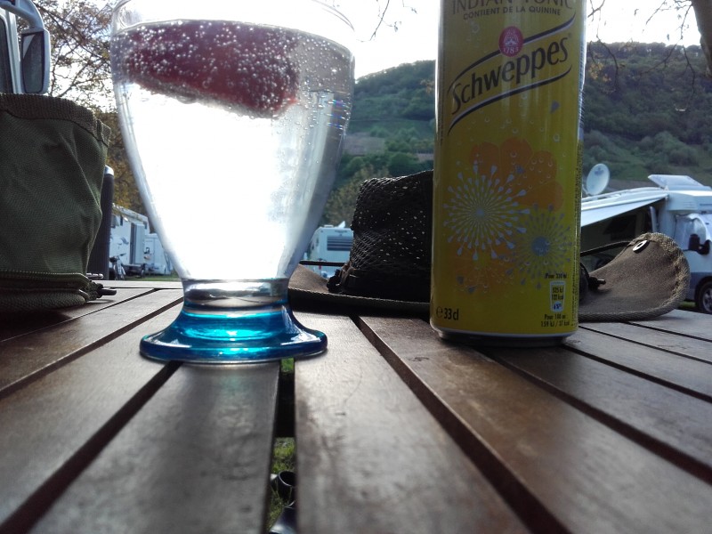 Aurinko paistaa ja kanankoivet ovat kypsymässä, on aika aperatiivin eli gini tonic mansikan viipaleen kera. Smaakelijk!. ;)