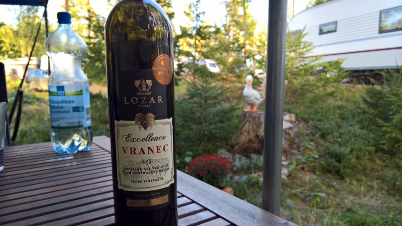 Kesän satoa Makedoniasta. Laatuviiniä ei mitään litkua, saanut ihan mitaleita. Noin 5€/plo. Hauskinta että ostettiin kaupasta missä ei ollut viiniä myynnissä. Kauppias vei takahuoneeseen ja myi "pimeätä" ei kuulemma ollut lisenssiä 😁  Omara Portuondo soi taustalla nyt.