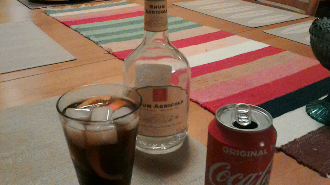 Keli eikun lämpenee, maatalous rommia Martinique;lta, Coca Cola, appelsiinin viipaleita ja jäitä.