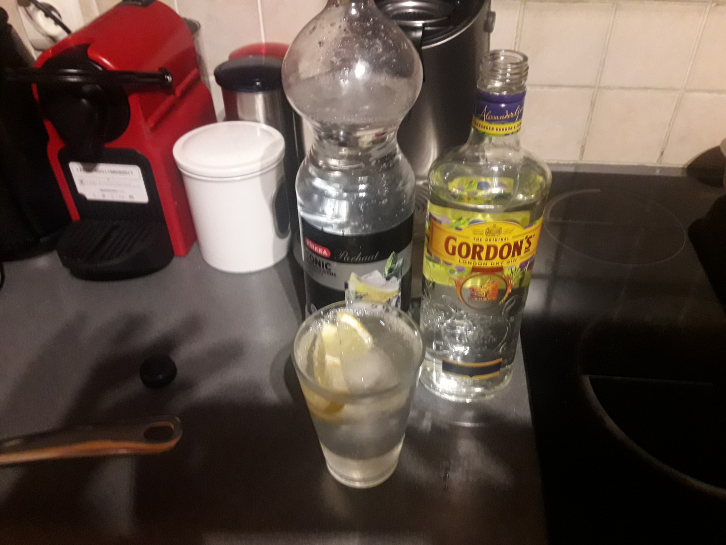 metri gini, pirkka tonic, kaupan oma merkki sitruuna ja ikean lasi ;)