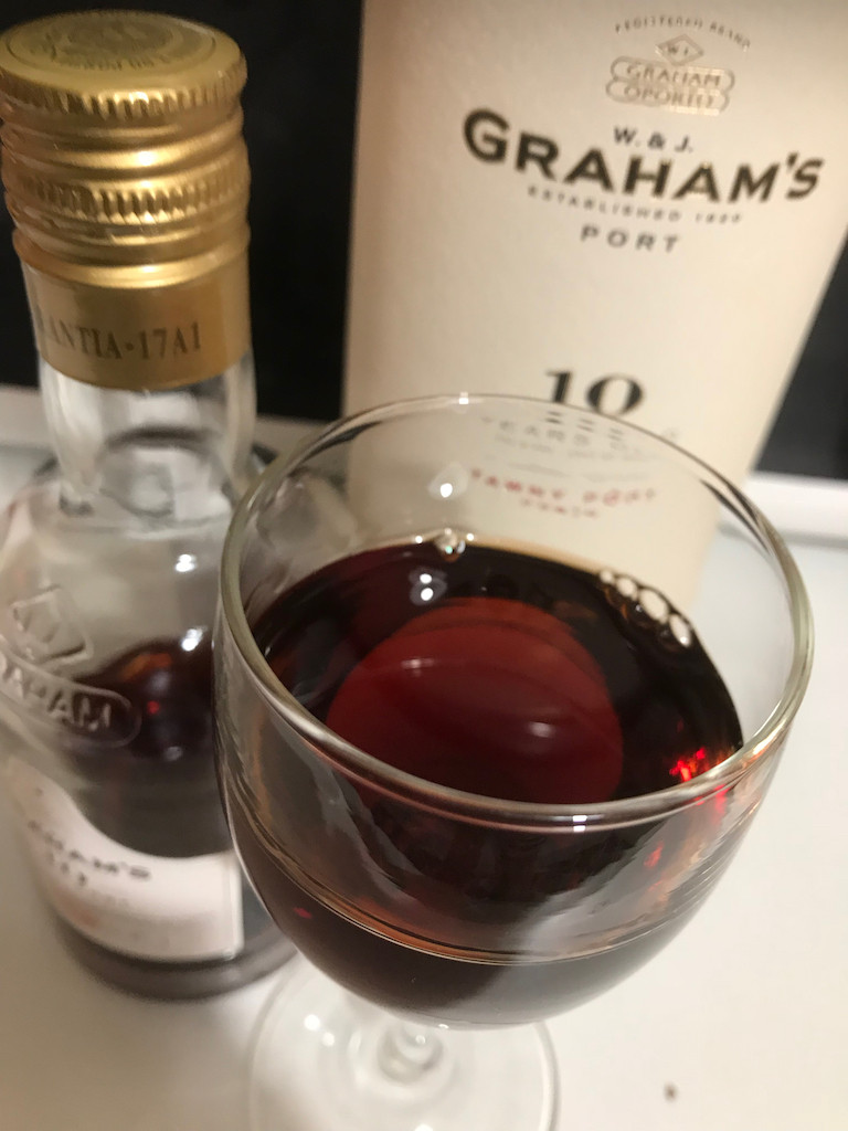 Portviini, seuraksi valkohomejuustoa ja viikunahilloa rapealla suolakeksillä.