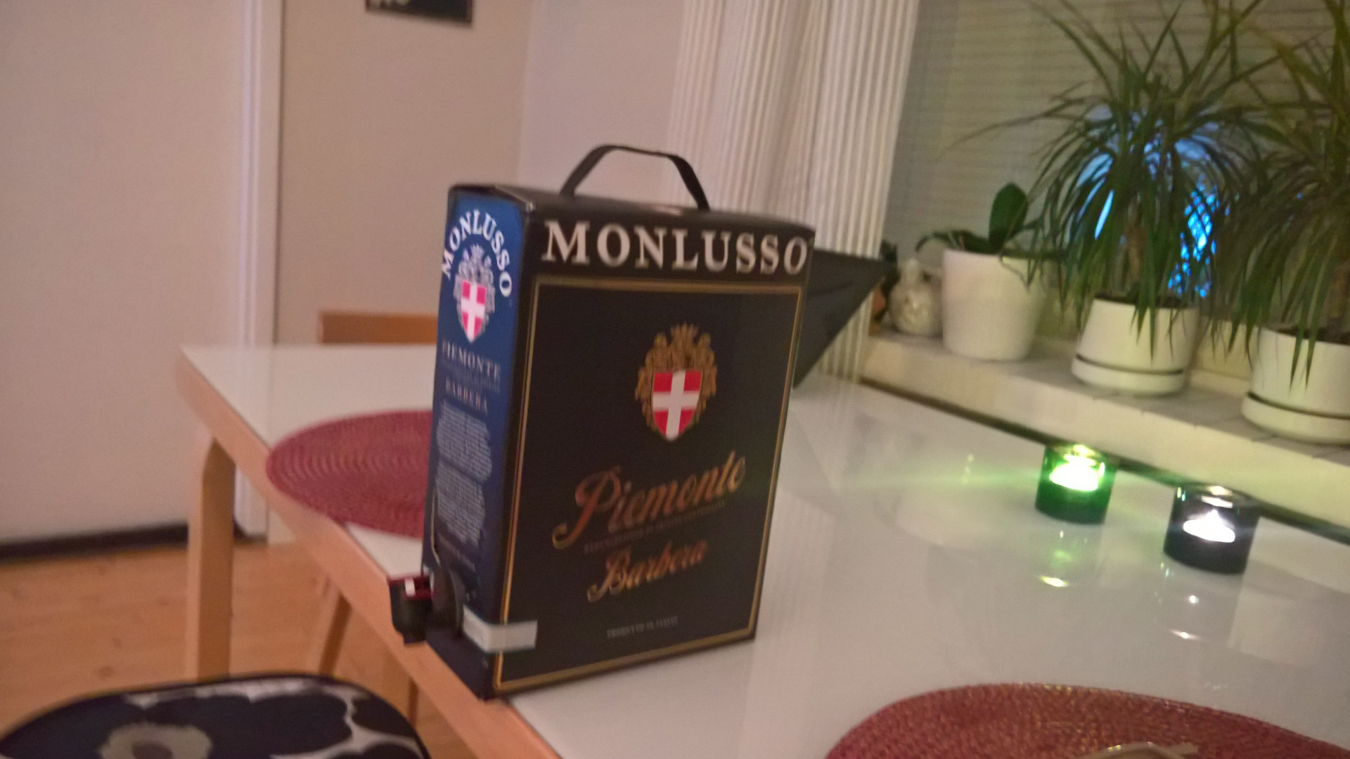 Hyvää punaviiniä pullo ruokaa laittaessa, syödessä ja jälkiruuan kanssa. Oikein sopiva.