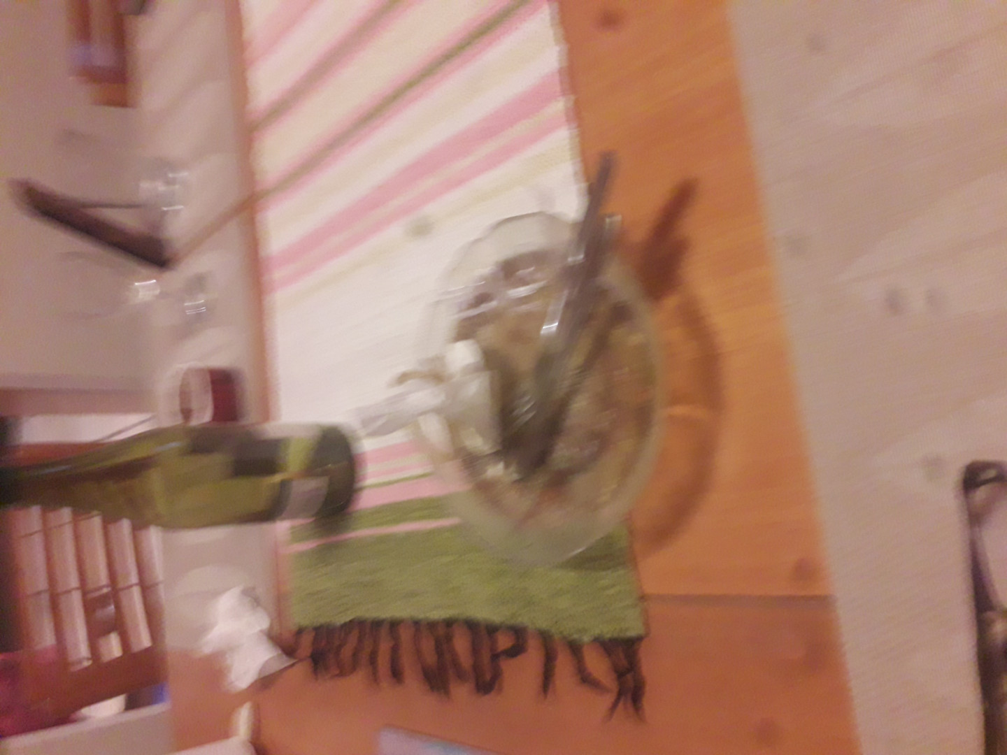 Ensimmäinen pullo meni mee te neem china eten kera vaimon kanssa kahden, toinen aukes just, pikkurilli sillee sievästi kippurassa nautitaan kahden olosta kun poika läks Brysseliin