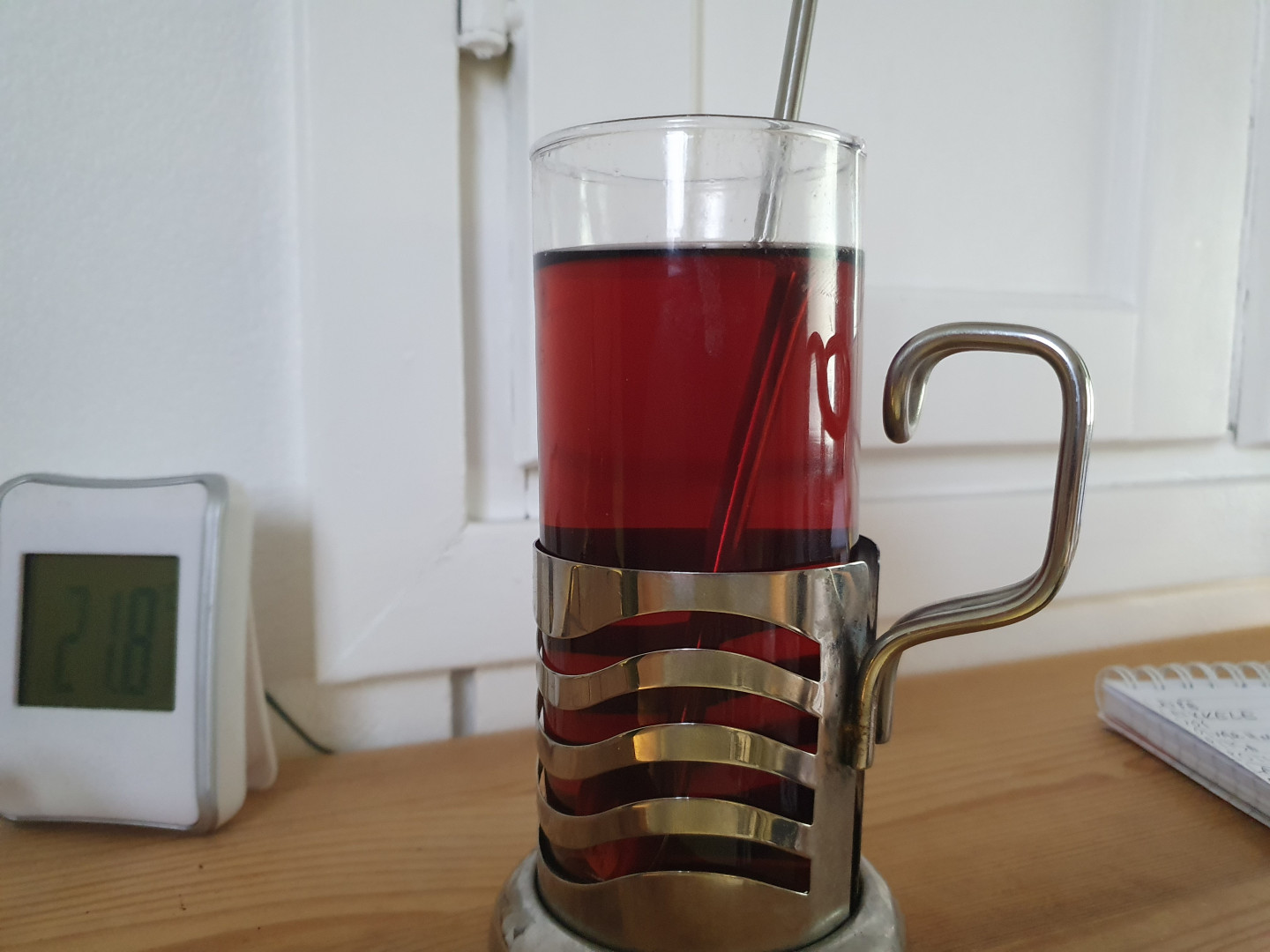 Kunnon konjakki muki ihan vaan yskään. Ja jos se pitäisi koronan loitolla., ja emännän. Sillä kun on korona ja mulla ei niin nukutaan eri huoneissa. Otan tuo yskänlääke pullon sänkyni viereen.