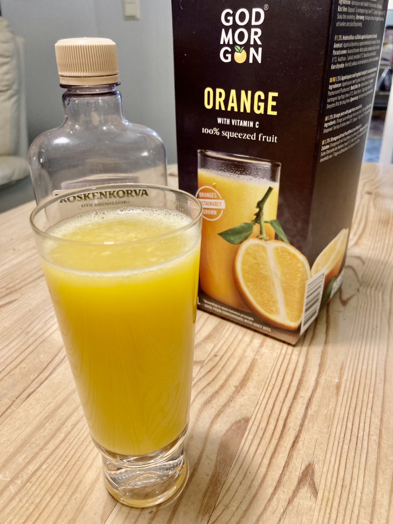 Vodka tonic puristetulla appesiinin mehulla ja muutamalla viipaleella.