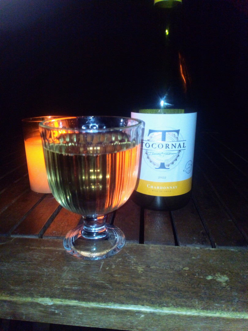 Kuvassa talon valkoviiniä ja ruuan päälle otettiin limoncellot.
