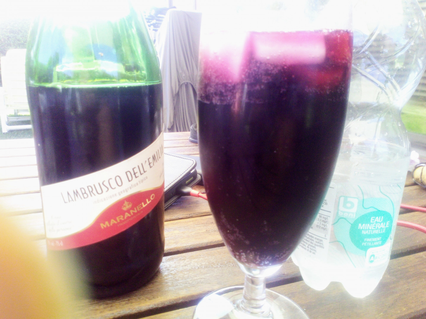 Portugalin rose' , kivenäisvesi, kolme mansikkaa ja jäitä, aika hyvä helle juoma, rose'n alkoholi 10%.