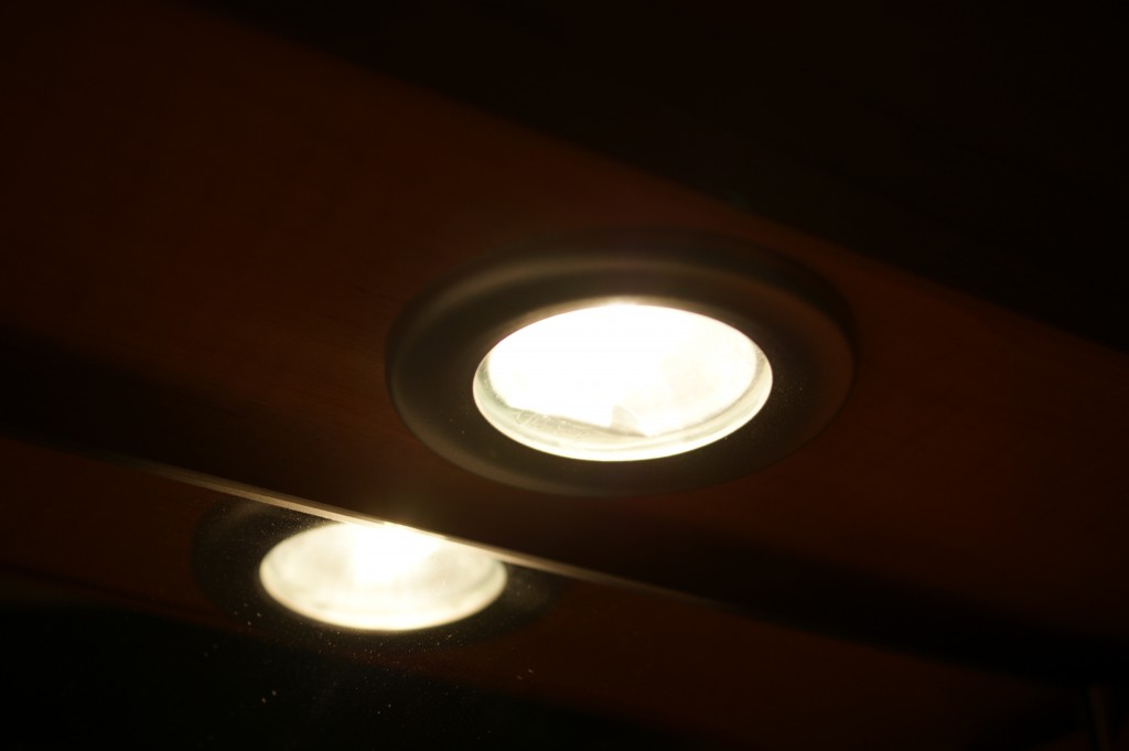 Lukuvalot puuttuivat. Pienet 12V:n spottivalaisimet eivät ole kokemukseni mukaan hyviä, koska ne niitä on hankala sijoittaa oikeille kohdin, ne antavat kapean valokeilan ja niitä olisi oltava useita kappaleita.
