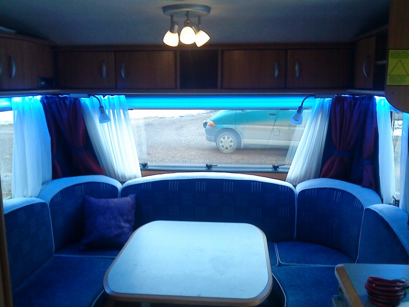 Laitoin "mooveomiheltä" tilattua kirkas valkoista led- nauhaa takakonttiin n. 70 cm. pätkän. Edessä oven avauksella syttyy yksi pätkä nauhaa, on hieman  kirkkaampi kuin alkuperäinen valo. Kytkimellä saa kuusi pätkää lisää, joilla näkee lukea mukavasti. :D
