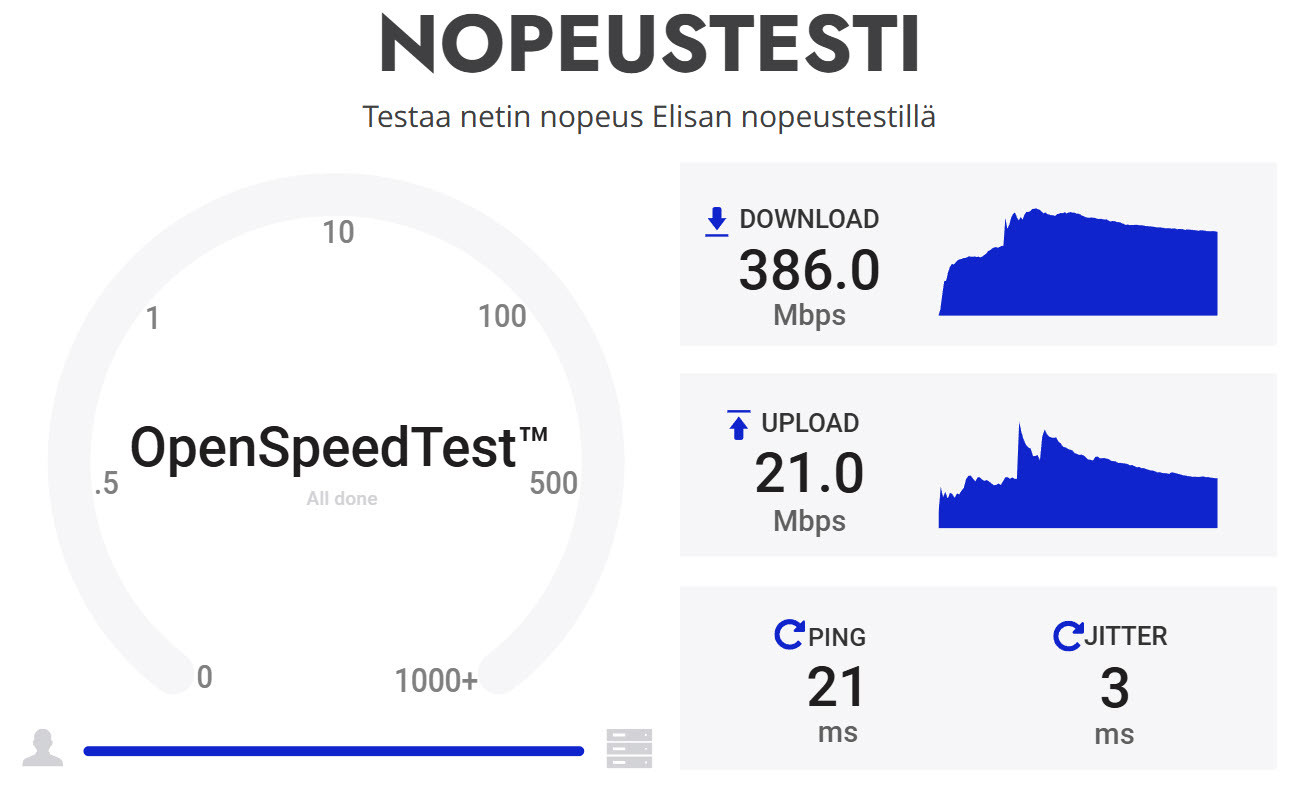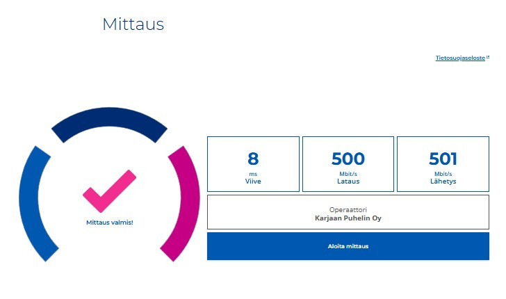Karjaan Puhelin ei oikein saa toimitettua sitä mitä on sovittu. Pitäis olla 500Mbps kuituyhteys, mutta tuohan heittää pahasti sovitusta. ;D