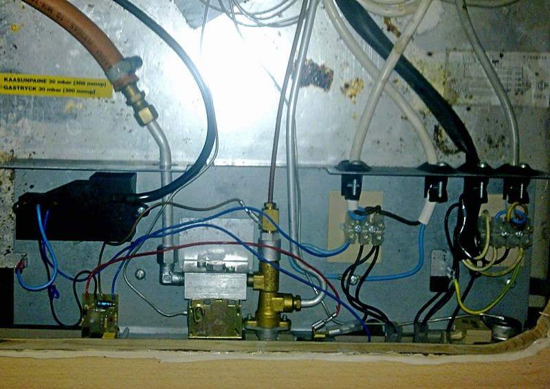 En tiedä toisista kaapeista,mutta tuossa minulla ainakin kytkimeltä tulee suora kytkentä muuntajalle (sininen paketti ) ja ei nakuta muuta kuin painamalla säätimestä,nakutus loppuu,kun liekki syttyy,mutta kun kaappi sammuu ajon aikana,uusi painaminen säätimestä!!! Joissakin on mikrokytkin ja toisissa liuskakytkin, siis vanhoissa kaapeissa. Uusissa elektroniikka ohjaa, mutta ei saa kipinöidä kuin käynnistettäessä. Jos kaappi sammuu kesken käynnin niin silloin kipinöi kun ei syty ja liekkivahti on jo toiminut eli kaasu sammunut. Mielestäni uusissakin on vika aiemman tilanteen mukaan jos kipinöi, mutta en ole tutkinut tuota ohjainkorttia vielä kovin tarkasti. Minulla on niitä tutkittavina.Ootkos MJo tutkinut tuon kaapin ohjauksen sielunelämän ? Mulla mikrokytkin ja jos sammuu kesken kaiken sytyttää automaattisesti uudelleen ja jos ei sittenkään syty ja liekkivahti katkasee kaasun tulon niin kipinäkin loppuu ja jos taas kaasu loppunut (ei painetta putkessa) ei yritäkkään kipunoida. Olisko näin ? ![]() Vs: Jääkaapin kipinäsytytysOotkos MJo tutkinut tuon kaapin ohjauksen sielunelämän ? En ole joutunut moiseen tutustumaan. Näyttää tuo liekkivahdin kela olevan mukana sytytyskytkennässä. Oli jääkaappi paripäivää pois päältä ja kun koitin sytyttää uudelleen ei tapahtunutkaan mitään, vika löyty kipinämuuntajalta runkoon menevästä sinisen johdon litteestä liittimestä mikä oli murentunut kokonaan murusiks olisko siinä tapahtunut jokin reaktio galvanoidun pellin kanssa, muut liittimet oli uuden veroisia eikä hajonneessakaan ollut yhtään hapettumaa.