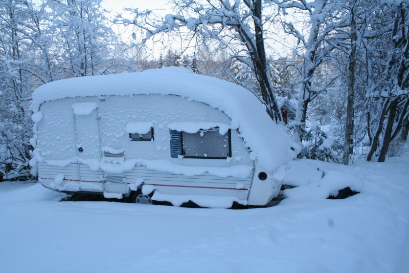http://www.nettikaravaani.com/hobby/720/1451357  tuossa ilmeisesti malliesimerkki kuinka talvella ei saa vaunun luota jättää lumia luomatta.
