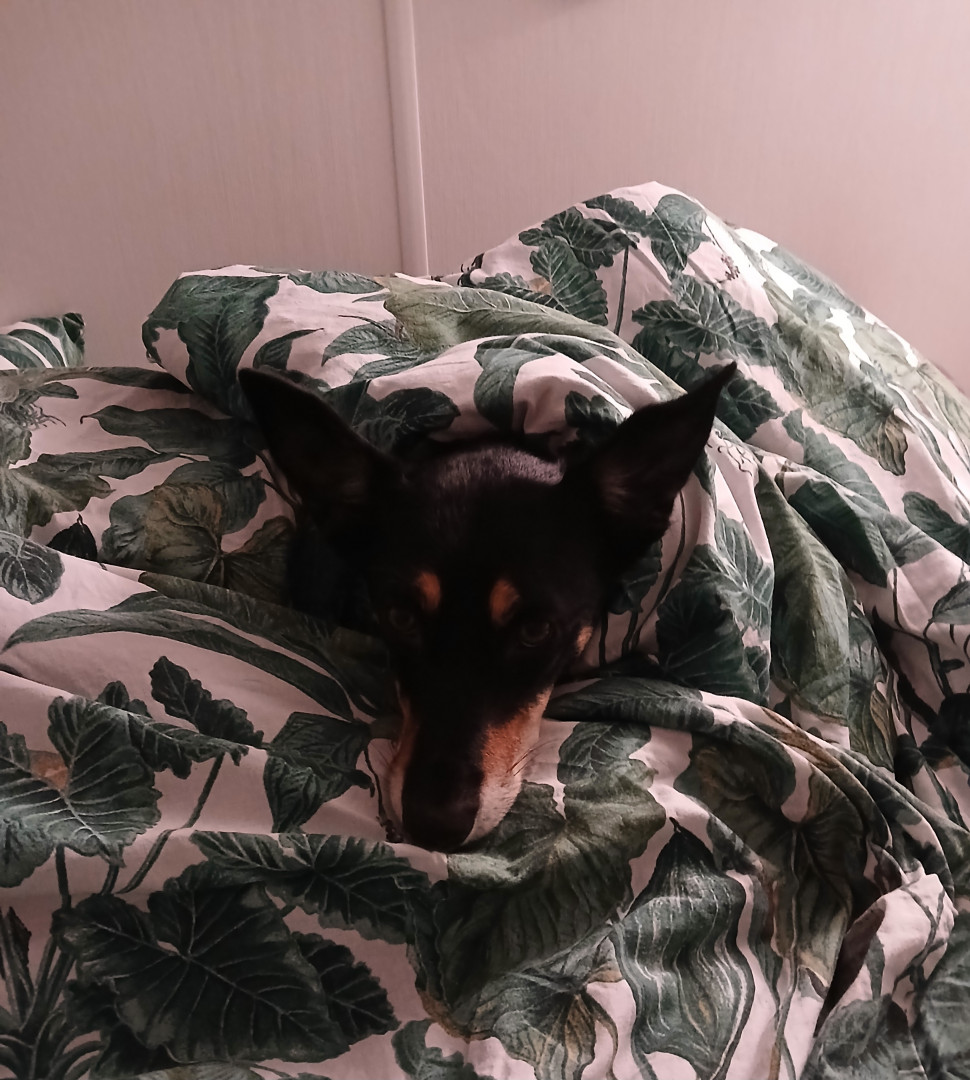 Tässä meidän soffan valtaaja eilen ehtoolla...